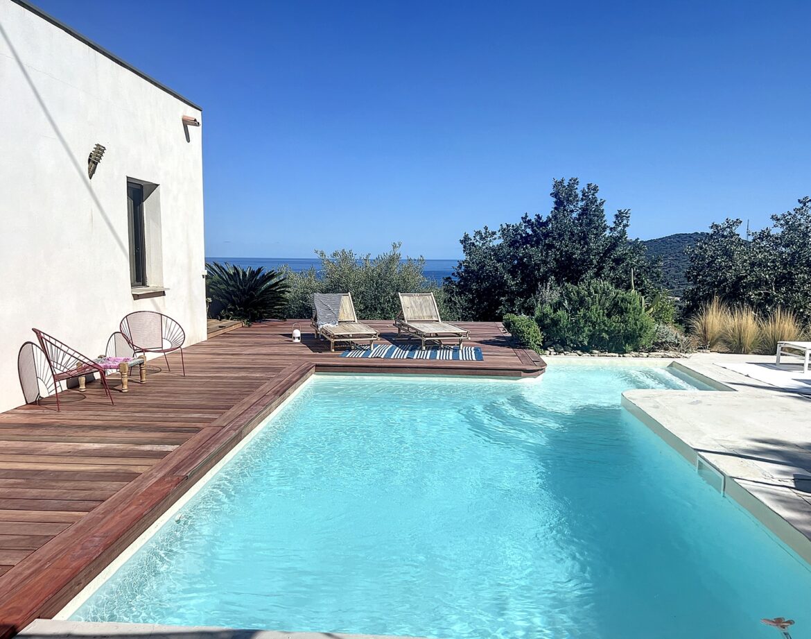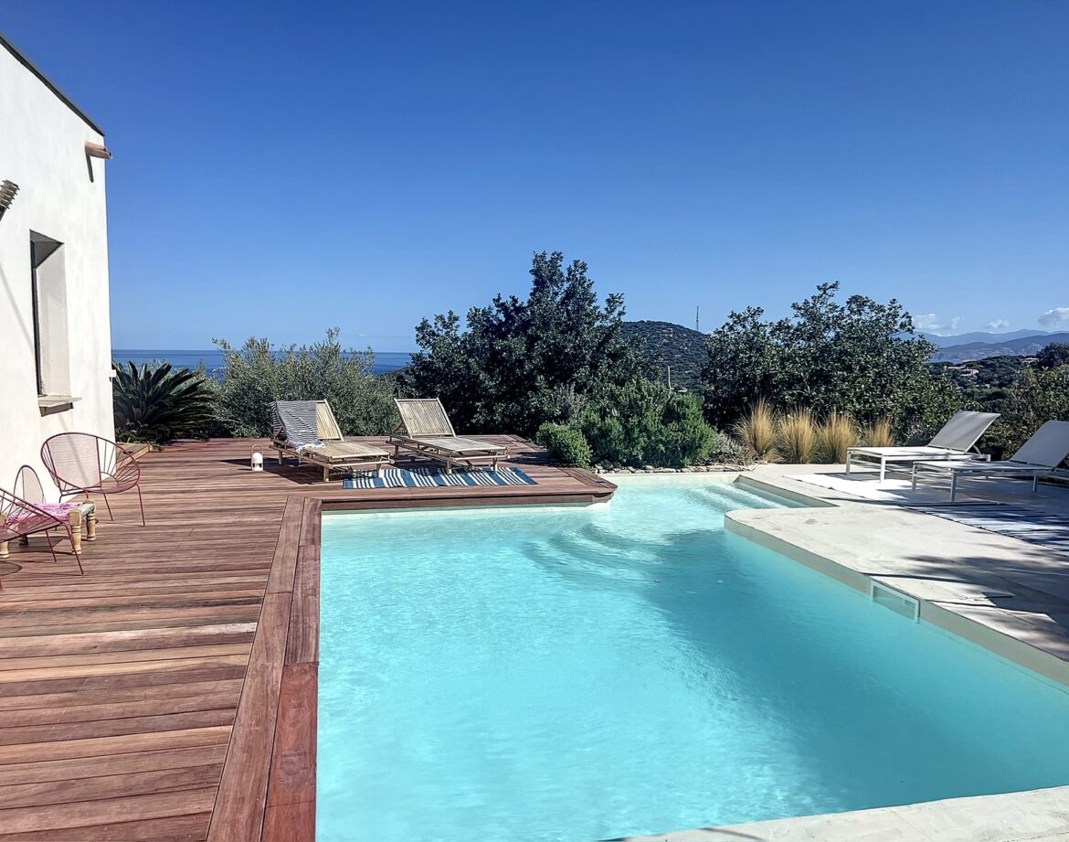 Cette très belle villa a une vue panoramique sur la mer, le Cap Corse et les Agriates au loin.