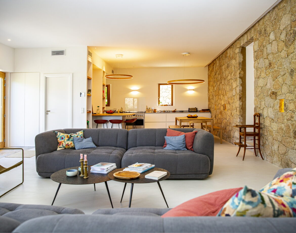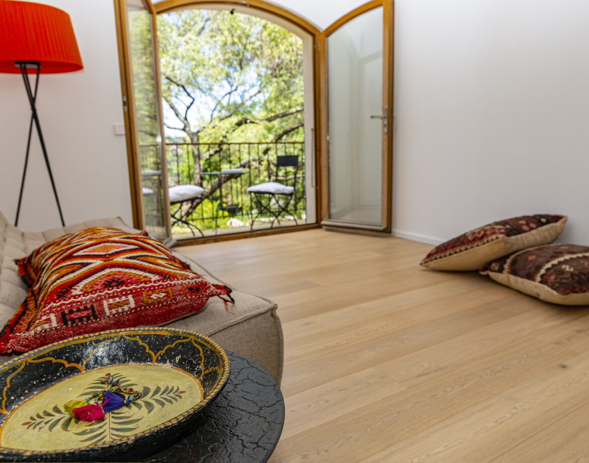 – un vaste salon/séjour ouvrant sur la terrasse vue sur le jardin et les montagnes alentours