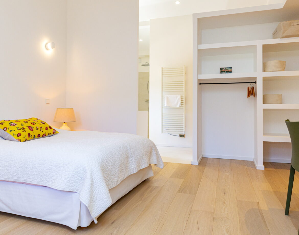– une chambre (lit 160) avec sa salle d’eau privative, climatisée, avec également un ventilateur en plafonnier