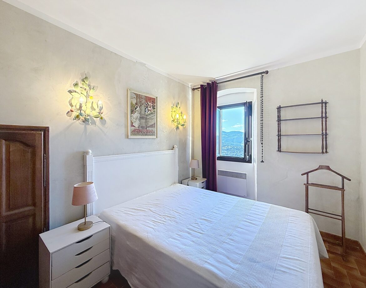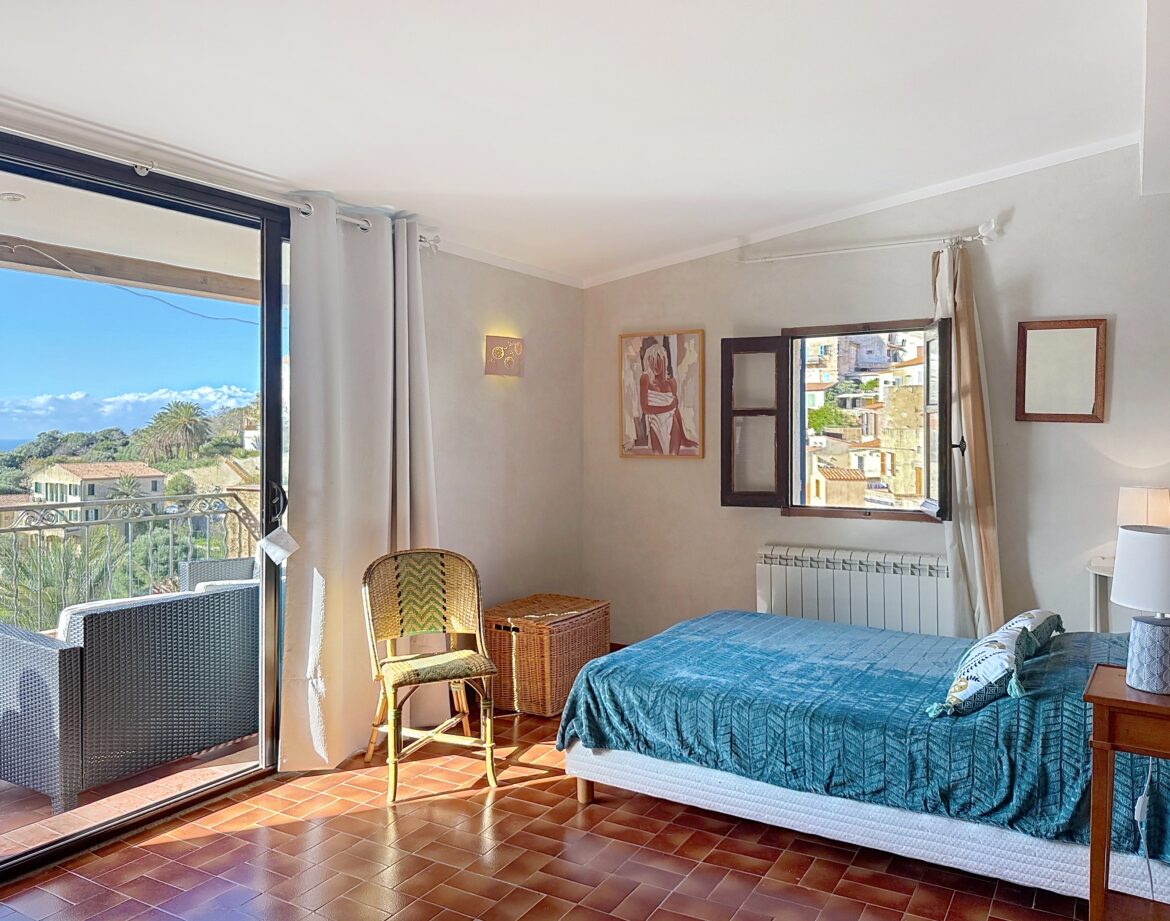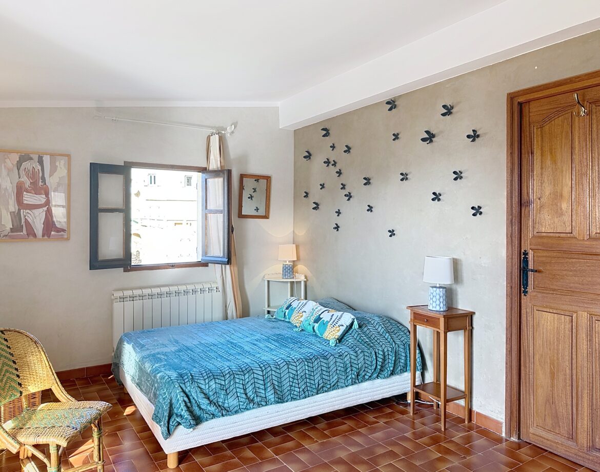 – 4 ème chambre avec un lit double (140) et sa grande terrasse où vous pourrez en profitant de la vue magnifique sur la montagne et au loin sur un petit coin de mer, prendre un apéritif ou un petit café.