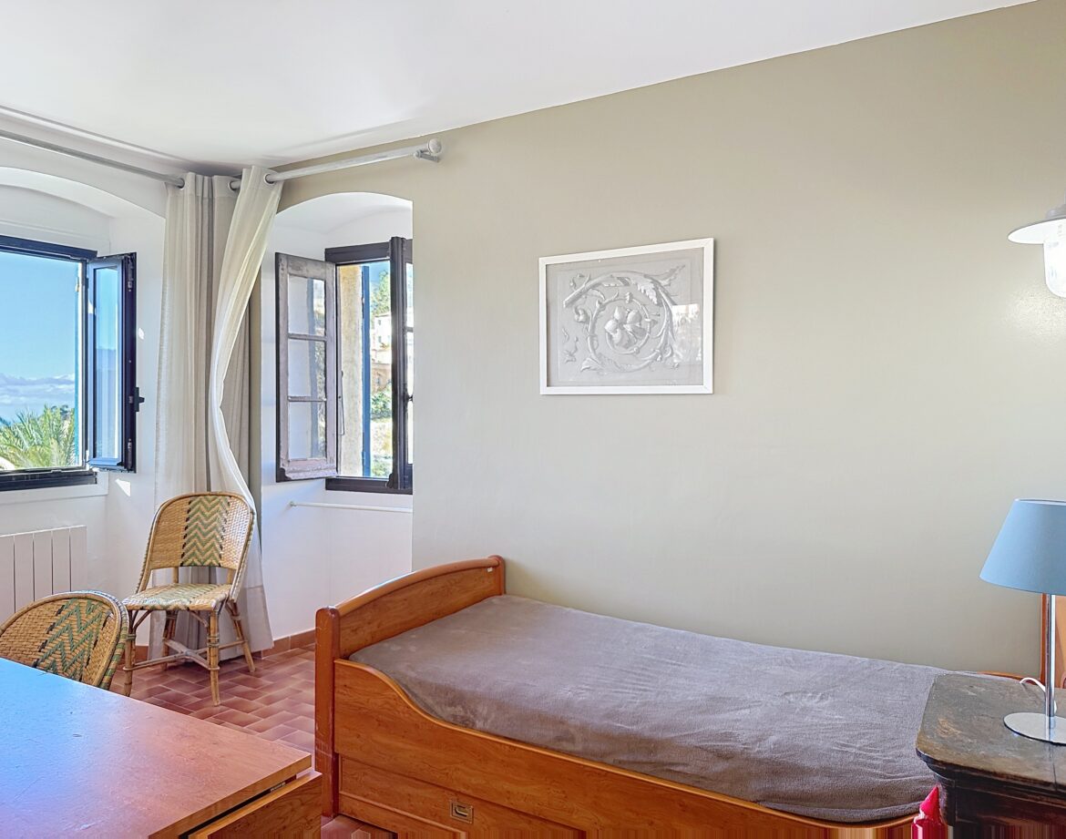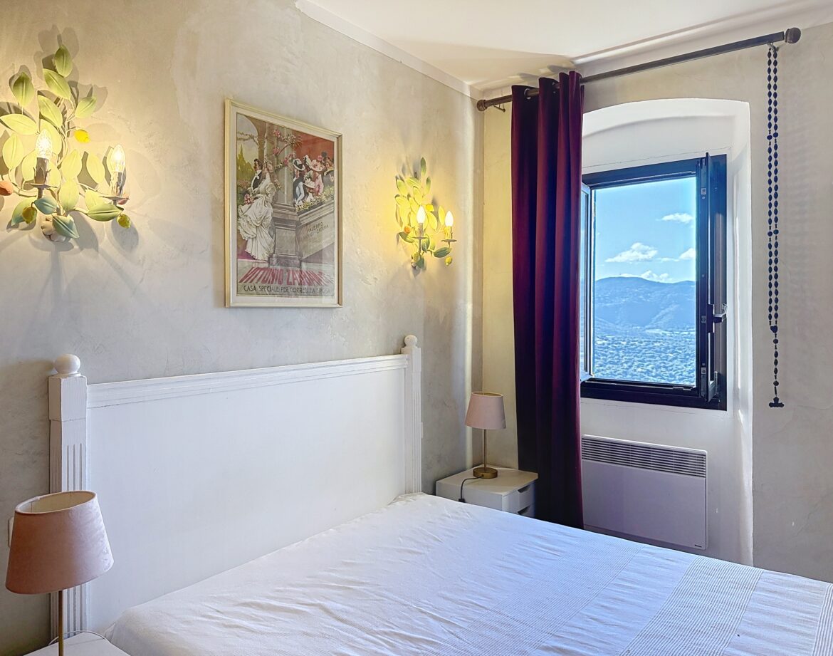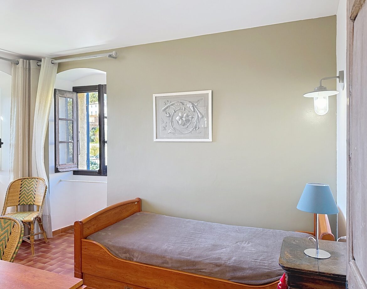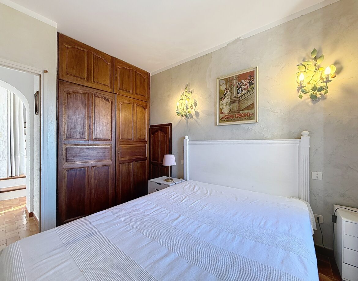 – 4 ème chambre avec un lit double (140) et sa grande terrasse où vous pourrez en profitant de la vue magnifique sur la montagne et au loin sur un petit coin de mer, prendre un apéritif ou un petit café.