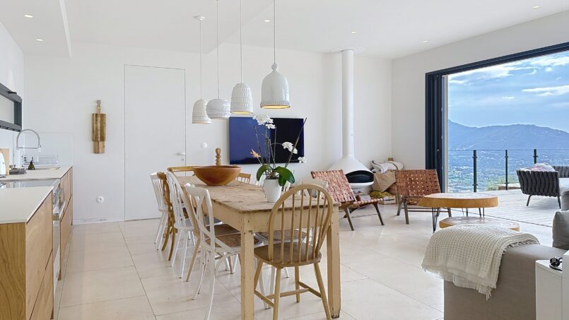 – un salon ouvrant sur la terrasse face à la vue panoramique.